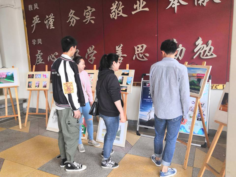 为相应学院团委学雷锋活动日号召,18级数字媒体应用技术班举办了“我的美好校园”雷锋活动日主题画展活动。此次活动主要分为画展和摄影展两个部分,经过了一个星期的准备,考虑到天气原因,画展于4月2日-4月3日在教学楼大厅举办。