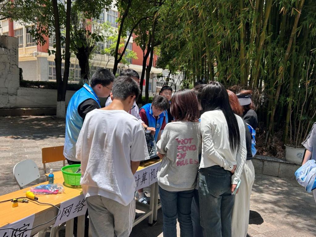 在志愿者的积极宣传和努力下,活动现场吸引了众多学生前来咨询和求助。志愿者们不仅提供了电脑系统升级、病毒查杀、硬件检修、网络连接设置等专业服务,还向同学们普及了网络安全的基础知识,教授他们如何识别网络诈骗,保护个人信息安全。
