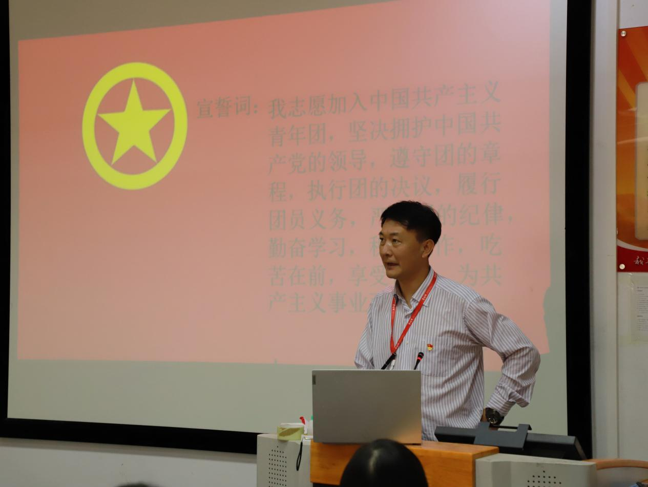 仪式上,学院团总支组织委员李慧星同学首先宣读了新团员名单,并对新团员的加入表示热烈的欢迎和衷心的祝贺。随后,学院党支部书记、团总支书记和团支部副书记共同为新团员佩戴团徽。这一刻,每一位新团员的脸上都洋溢着自豪和喜悦的笑容,他们深知,这不仅仅是一份荣誉,更是一份责任和担当。