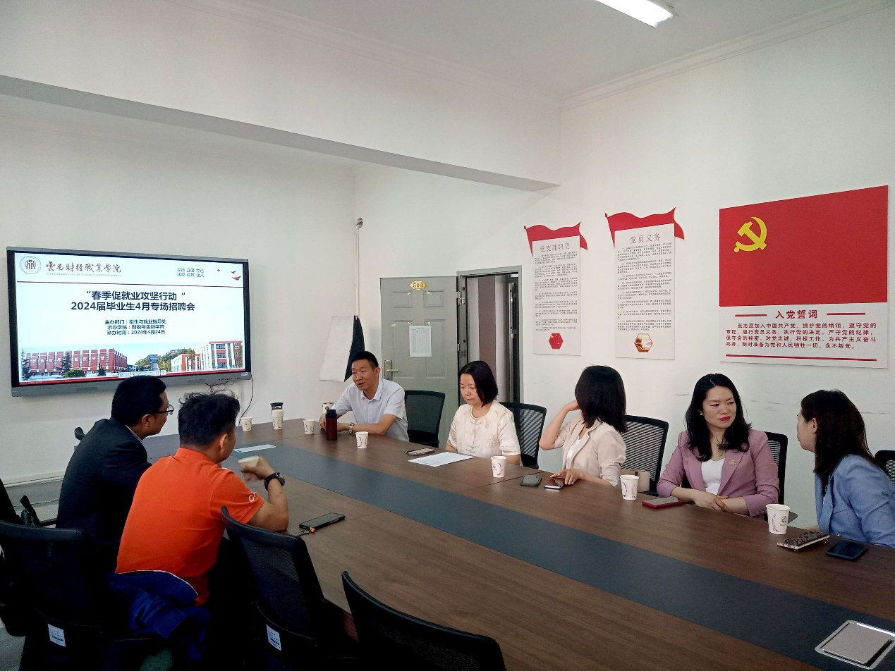 4月24日,学院组织了校园专场招聘会,6家企业入校宣讲,提供涉及实习会计、财税顾问、公司行政、酒店前台等岗位30余个岗位,47名学生参与应聘。