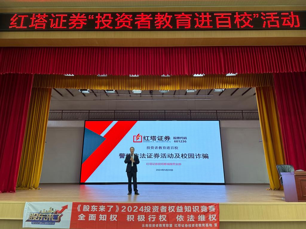 为积极提高在校大学生金融知识水平,加强专业认知,提升学生金融风险意识,2024年5月30日我校院财税与金融学院与红塔证券投资者教育基地一同开展了以“防范非法证券活动及校园诈骗”为主题的投资者教育进百校活动,以实际行动引导大学生加强金融风险防范意识。