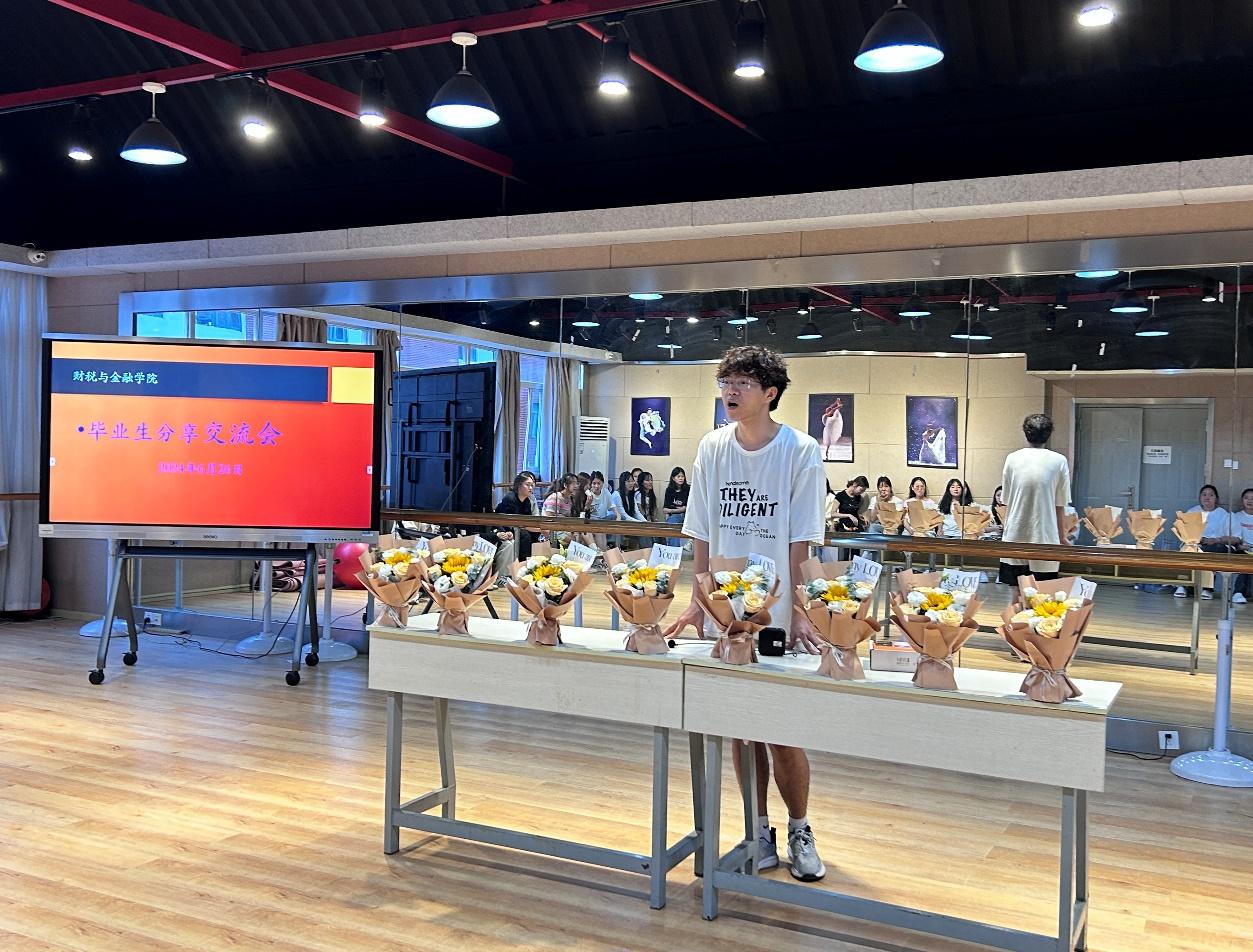 方爱莲老师对毕业生们的分享级对学院工作的支持表示诚挚的感谢,愿毕业生们有前程可奔赴,亦有青春可回首!同学们共同为学姐学长们送上鲜花与精心准备的小礼品,共同观看了由财税与金融学院学弟学妹为2024届毕业生拍摄的毕业寄语,并在分享交流会的结尾,大家为学姐学长们共同献上了一首歌,祝愿学姐学长们毕业快乐、前程似锦、未来可期!