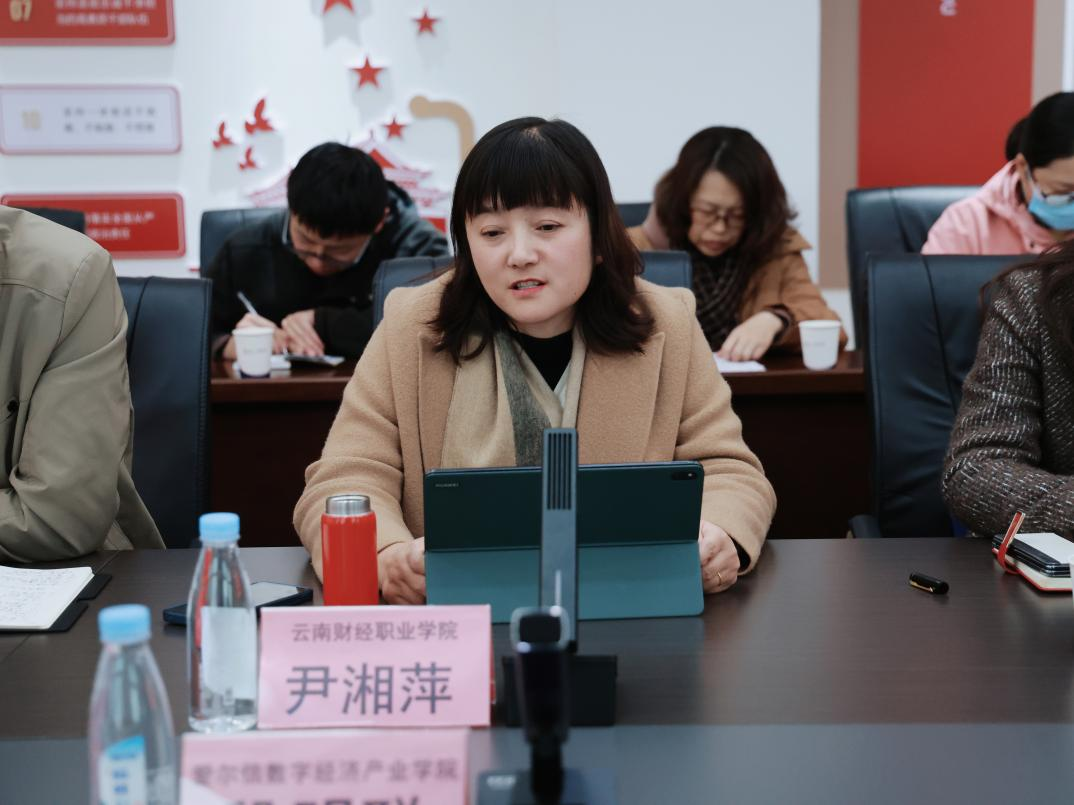 邹丽校长听取了财税与金融学院和爱尔信数字经济产业学院对校企合作、专业建设、学生管理、教学管理和创新发展等方面的工作汇报,并对两个学院的工作给予充分肯定,同时提出五点工作要求:一是要强化校园安全保障,构建全方位、多层次的校园安全防护,筑牢校园安全防线;二是要积极推进教育教学改革,优化人才培养方案,充分匹配行业企业需求;三是要搭建企业实践平台,推动企业骨干与校内教师双效交流,积极打造“双师型”高水平师资队伍;四是要多渠道拓宽就业渠道,搭建更多就业平台,为学生提供丰富的就业信息与指导服务,确保学生顺利、高质量就业;五是要充分发挥头部企业优势和影响力,深化校企合作模式,积极探索职教出海,助力学校高质量发展。