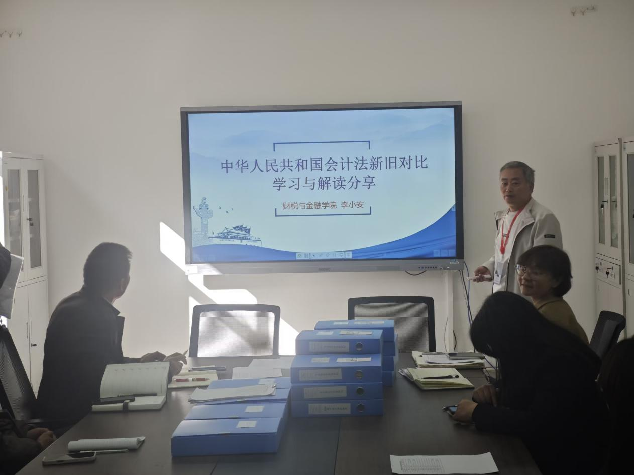教研会在积极而热烈的氛围中启幕,主题分享环节中,财税与金融学院银龄教师李小安进行专题讲座,对新老会计法进行深入剖析,详细解读了新修订的具体内容,结合丰富的实际案例,详细阐述了会计法修订对会计教学内容与实践应用的深远影响,讲解逻辑清晰、深入浅出,为参会教师提供了一次系统且全面的会计法知识更新,也为专业课程教学中如何融入法规变化、培养学生合规意识提供了新思路。