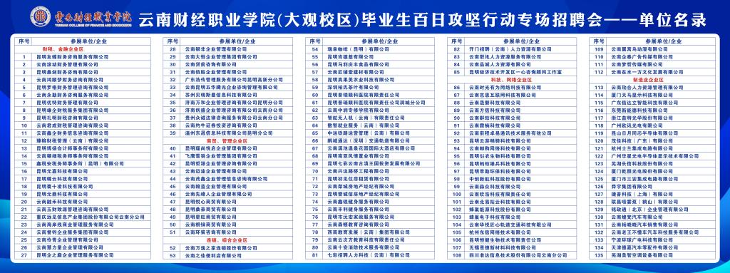 学校高度重视此次招聘会,从学生需求出发,多方联动充分挖掘企业资源。为扩大邀请企业的广度,提升专业匹配的精度,现场智配五个企业招聘专区,深度挖掘对口岗位。招聘会吸引了包括昆明友蝶财务咨询服务有限公司、云南滚动财务管理有限公司、云南鸿顺梦财务咨询有限公司、昆明博扬会计师事务所有限公司、昆明南亚风情置业有限公司等130家企业的参与,提供涵盖会计、管理、财务、电商、物流等多个专业领域的就业岗位共4169个。