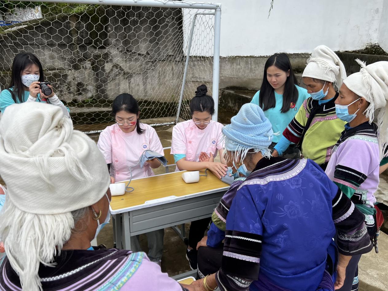 在龙车小学,师生与孩子做游戏,诵经典,讲故事,唱红歌,推送“语言扶贫APP”,填写调查问卷,了解当地方言特点,向村民演示了心肺复苏、海姆立克急救法等急救知识,为年长的哈尼族老人量血压,并与村民进行了深入的交谈,了解他们的学习、生活及对未来乡村发展规划等方方面面,活动尾声师生与村民共同跳起欢快的哈尼族舞蹈,为2022年度社会实践活动划上了圆满句号。