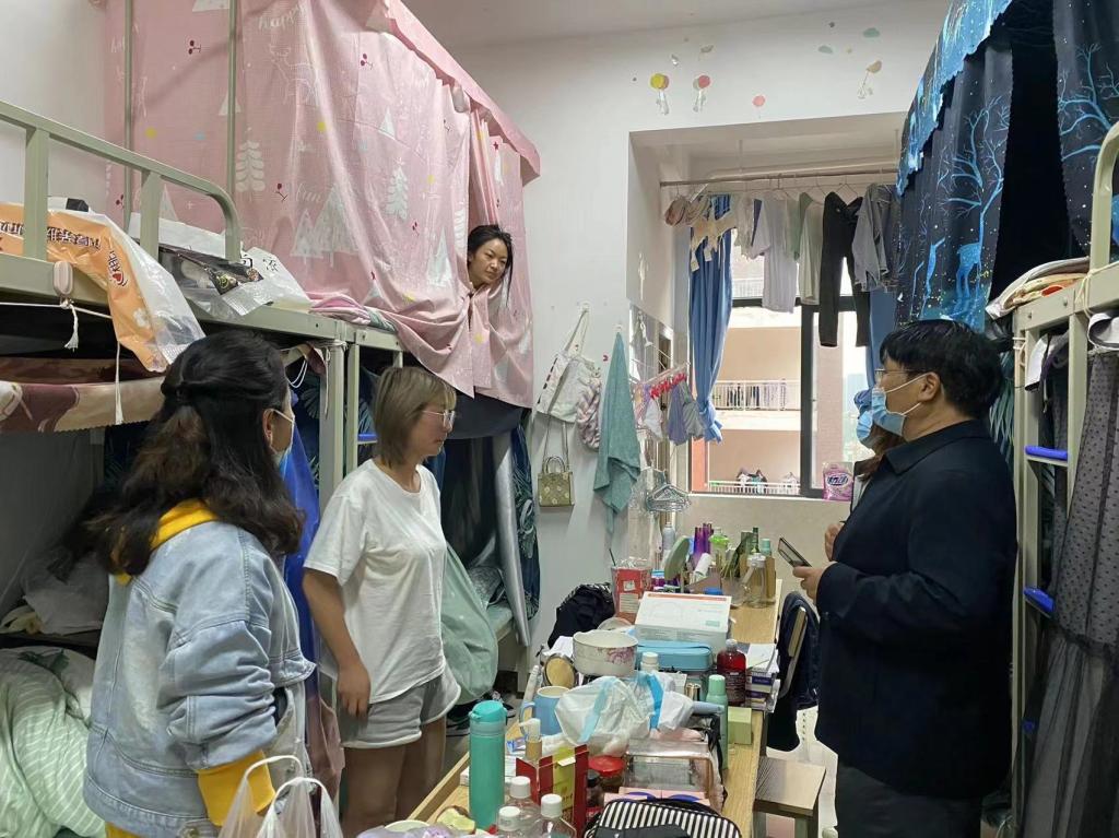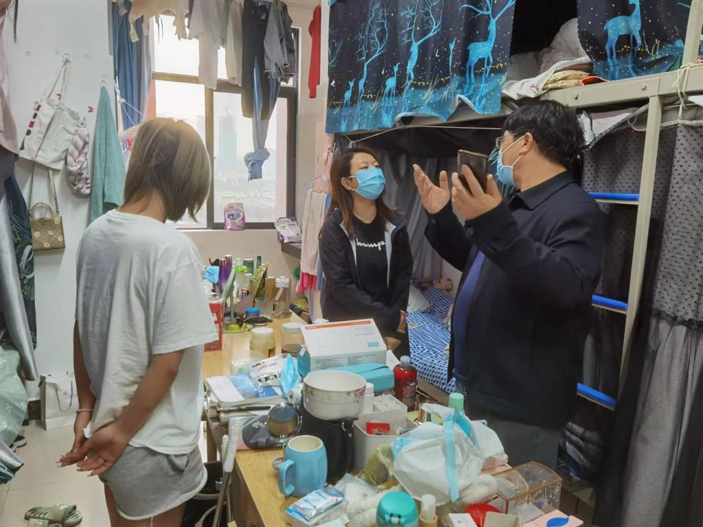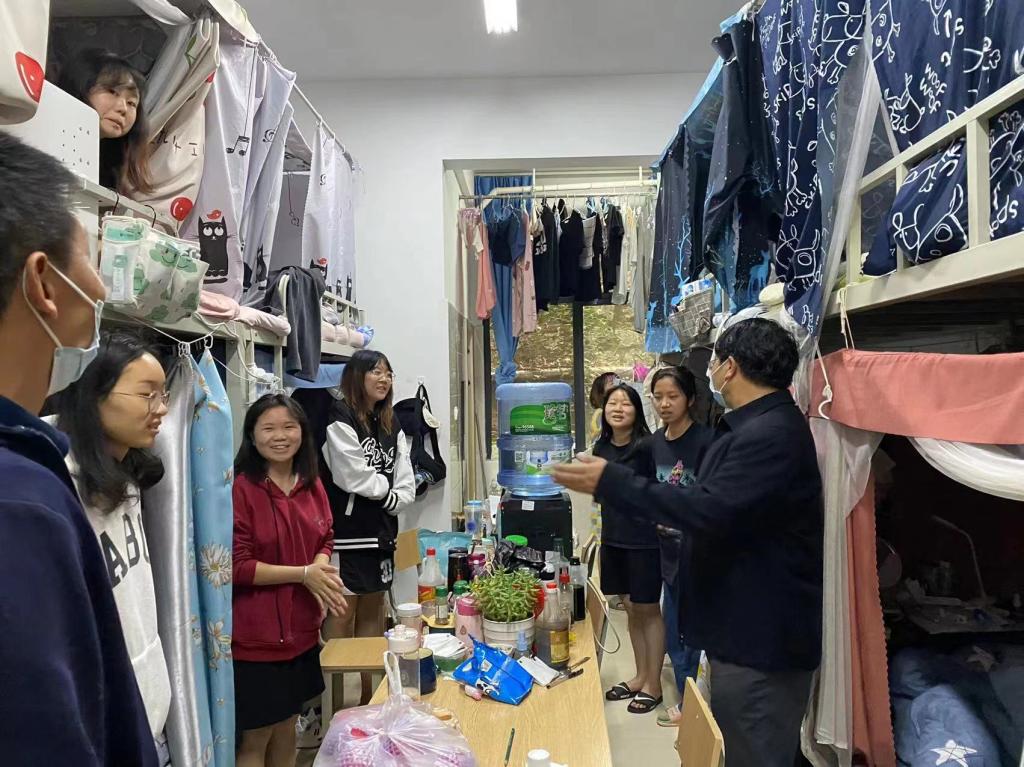 走访过程中,刘宁飞副校长悉心了解同学们的思想状况,学业情况和生活困难,老师们始终耐心解答同学们提出的问题。刘副校长强调,同学们在生活上或者学习上有任何疑惑或者困难,要及时向学校相关部门或班主任、辅导员反映,学校将着力满足同学们的合理诉求,尽最大努力为同学们营造良好的学习和生活环境。