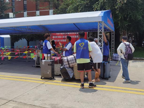 新同学们走进校园,学长学姐们组成的志愿者会主动接过重重的行李,引导和帮助新同学们办理入学手续,并带着新同学们认识校园,了解食堂,入住各自的宿舍,志愿者们热情亲切的服务深深感动了刚刚入学的弟弟妹妹们。