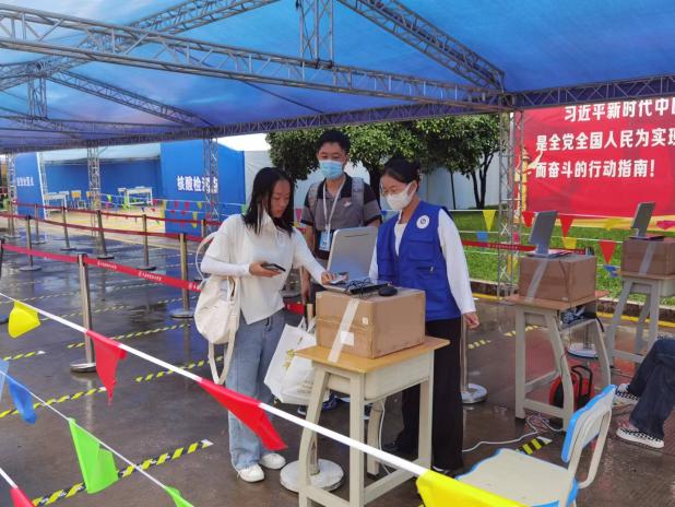 2022级新同学冷欣楠说:“开学前我做了很充分的准备,每天都认真填写健康打卡,并把行程记录,都发给了辅导员老师,今早下大雨来到学校,门口的老师们给行李认真消毒,查看健康码、行程码和核酸检测结果,然后才能进入,老师们做得非常认真,让我觉得进到学校很安全,我的班主任也很好,说话很温柔,给我安排了宿舍,还有学长帮我提行李带我到宿舍,开学了真的好开心。”