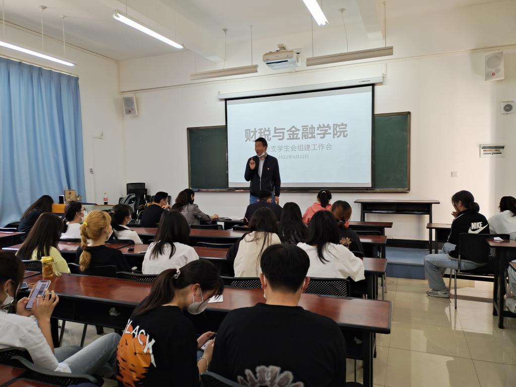 2022年4月22日下午4:00,财税金融学院第一届学生会干部竞选大会在铭德楼303室举行,学校团委李佳蓉老师、财税与金融学院党支部书记罗勇老师,副书记方爱莲老师,副院长梁帅帅老师及年级组长陈湘老师参加会议。