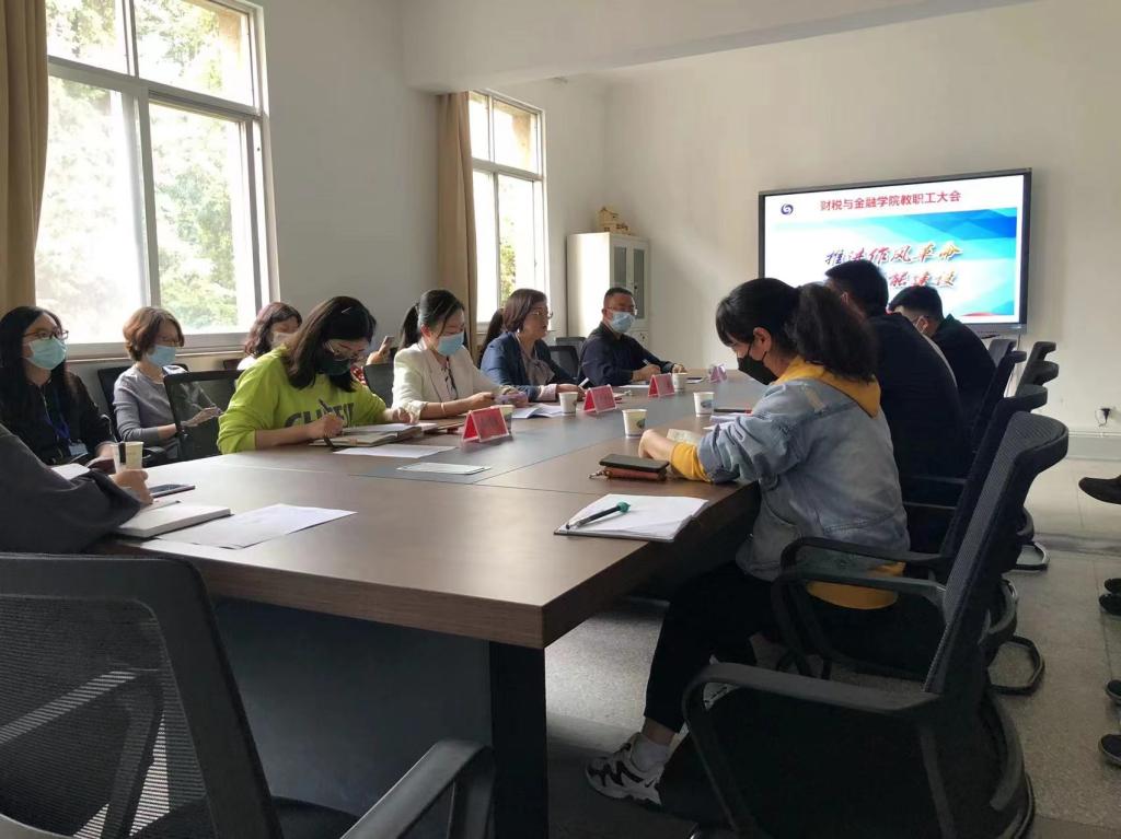 2022年4月14日财税与金融学院召开了成立以来的第一次教职工大会。学校党委委员、副校长沈豫琼同志介绍了财税与金融学院组建的出发点和逻辑,对学院今后工作提出铭记校训、建设队伍、做强做精的期望。
