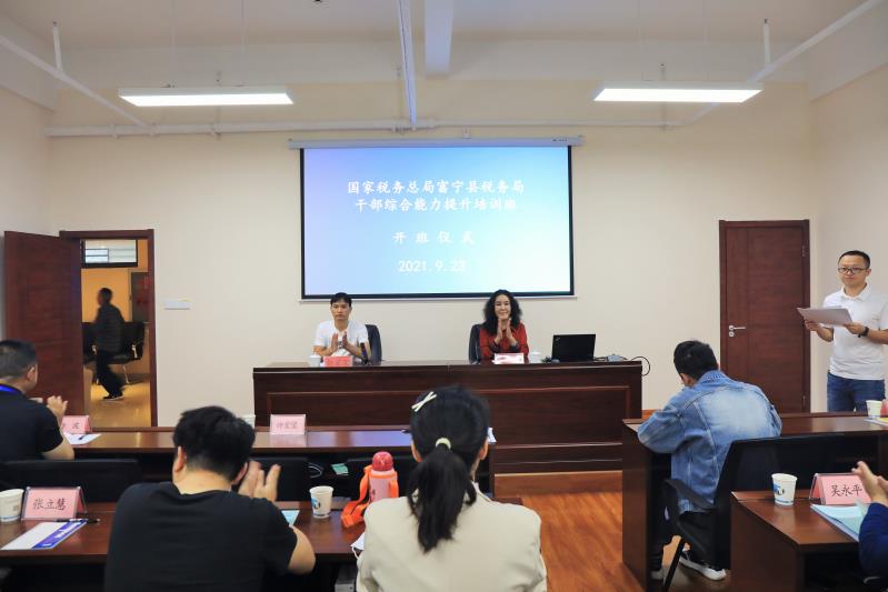 2021年9月22日,由国家税务总局富宁县税务局主办富宁县税务局2021年干部综合能力提升培训班,在云南财经职业学院继续教育学院正式开班,来自富宁县税务局共34名税务干部参加此次培训。本次培训班邀请了国家税务总局富宁县税务局党委委员副局长许宏望同志出席并在开班仪式上讲话。