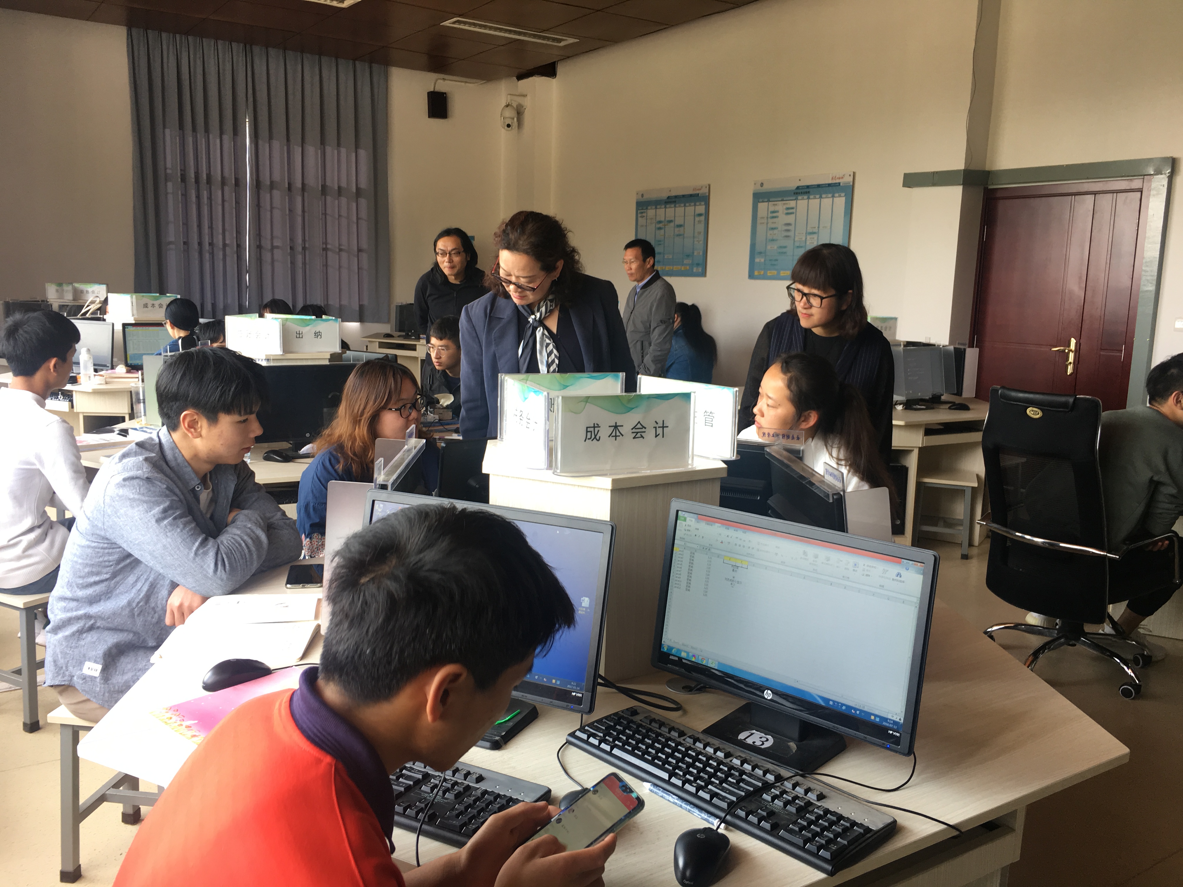 2019年云南省职业院校技能大赛即将开始,为了给参赛选手加油鼓劲,4月8日上午,副院长沈豫琼在会计系主任尹湘萍、副主任曾浩的陪同下深入训练场地看望技能大赛选手,了解备赛情况。