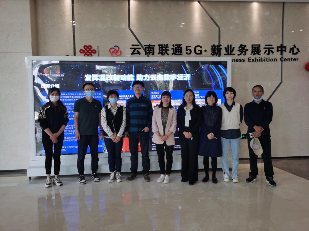 会计学院教师一行在张浩副总经理、董新峰总监的陪同下参观了中国联通(云南)5G创新业务展示厅和机房数据中心,深入了解公司发展历程、业务现状、发展规划、项目背景及相关建设情况。