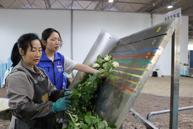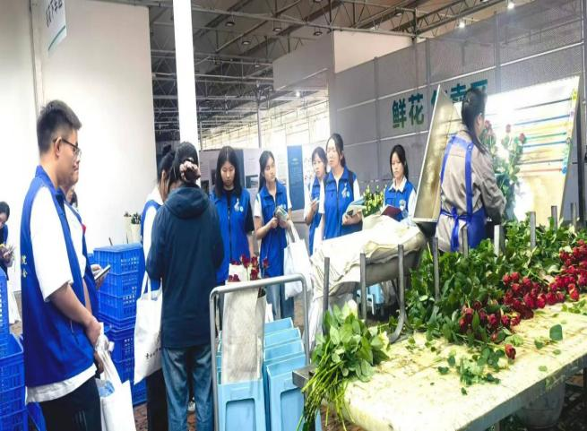 丽江现代花卉产业园是云南省高原特色农业的示范窗口。实践团成员深入鲜花生产基地,从无土栽培温室到终端销售直播间,全程追踪鲜花“从枝头到指尖”的全流程:在智能温控花棚内,成员们俯身观察基质栽培的各品种玫瑰花及园区自主栽培高品质马蹄花,与花农详细交流无土栽培如何降低病虫害、提升品质;在鲜花切割冷藏生产线上,他们记录分拣、质检、冷链运输的关键环节,与工人探讨标准化流程对鲜花损耗率的影响;在园区会议室,实践团与负责人围绕数字技术如何赋能花卉产业”展开座谈,团队还结合学校“花卉虚拟仿真中心”建设成果,分享了“通过虚拟技术模拟种植场景、优化教学实践”的创新思路,得到园区“将探索校企联合培养技术人才”的积极回应。