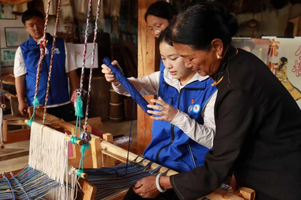 摩梭非遗博物馆以系统的展陈、生动的讲解,为实践团打开了一扇了解这一独特民族的文化之窗。聆听非遗传承人讲解摩梭历史文化、民俗风情与建筑特色。在非遗传承人的耐心指导下,学生们亲手参与纺织实践,在经纬穿梭间触摸文化温度;更通过试穿摩梭传统服饰,身临其境地感受这一民族独特的着装文化魅力。