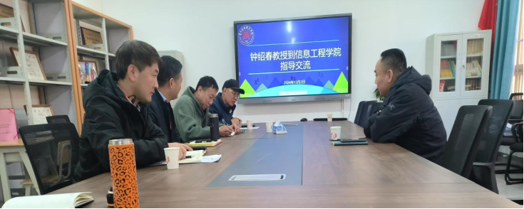 2024年12月2日学院柔性引进专家钟绍春教授应邀来到信息工程学院,与学院负责人和专业带头人一起,围绕专业建设、课程开设、教师发展、科学研究等进行交流和座谈,为学院的发展提出非常好的建设性指导意见