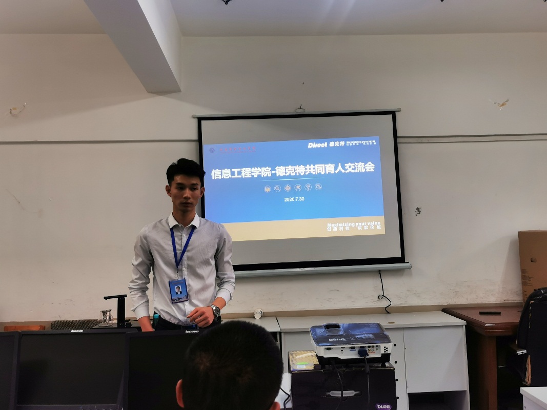 为了解合作企业办学思想和育人理念,促进校企双方深度交流,为学生提供更好的学习平台,7月30日下午,信息工程学院组织召开校企合作共同育人交流会,由学院领导、教师及德克特企业教师出席会议。