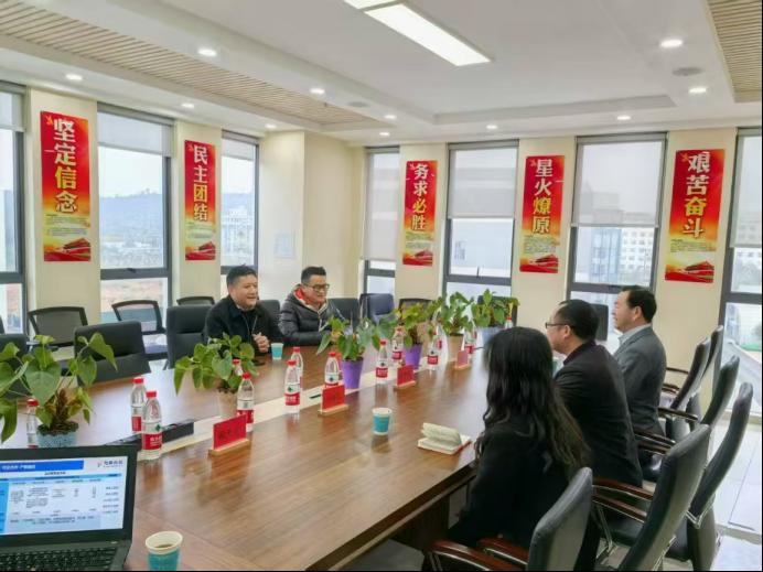 仪式前,校企双方回顾了共建实习实训基地的初衷、历程,吴贵州等代表企业介绍了历年发展情况、主要业务板块、未来发展方向等,并带领黎乾坤一行参观了实训中心。黎乾坤首先对企业在学生实习、就业等方面给予的大力支持表示感谢,然后介绍了学校、学院办学情况、发展思路,并就新形势下的校企合作、课程开设、师资建设等进行了进一步交流。仪式结束后,双方还就当前就业形势、学生实习、企业岗位需求等方面进行了深入交流。接下来,双方将以此次共建实习实训基地为契机,在人才培养、实习就业、专业建设等方面不断深化合作,以高水平产教融合推动高质量充分就业。