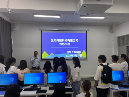 随后,云南朗易通信技术有限公司负责人骆丽昆和昆明升顺科技有限公司负责人王国华分别介绍了公司的总体概况和发展前景,说明了公司目前的招聘需求。同时,两位企业负责人就与我院达成长期交流合作、建立实习就业基地等事宜进行了商讨,表达了与我院达成合作的意愿和期望。