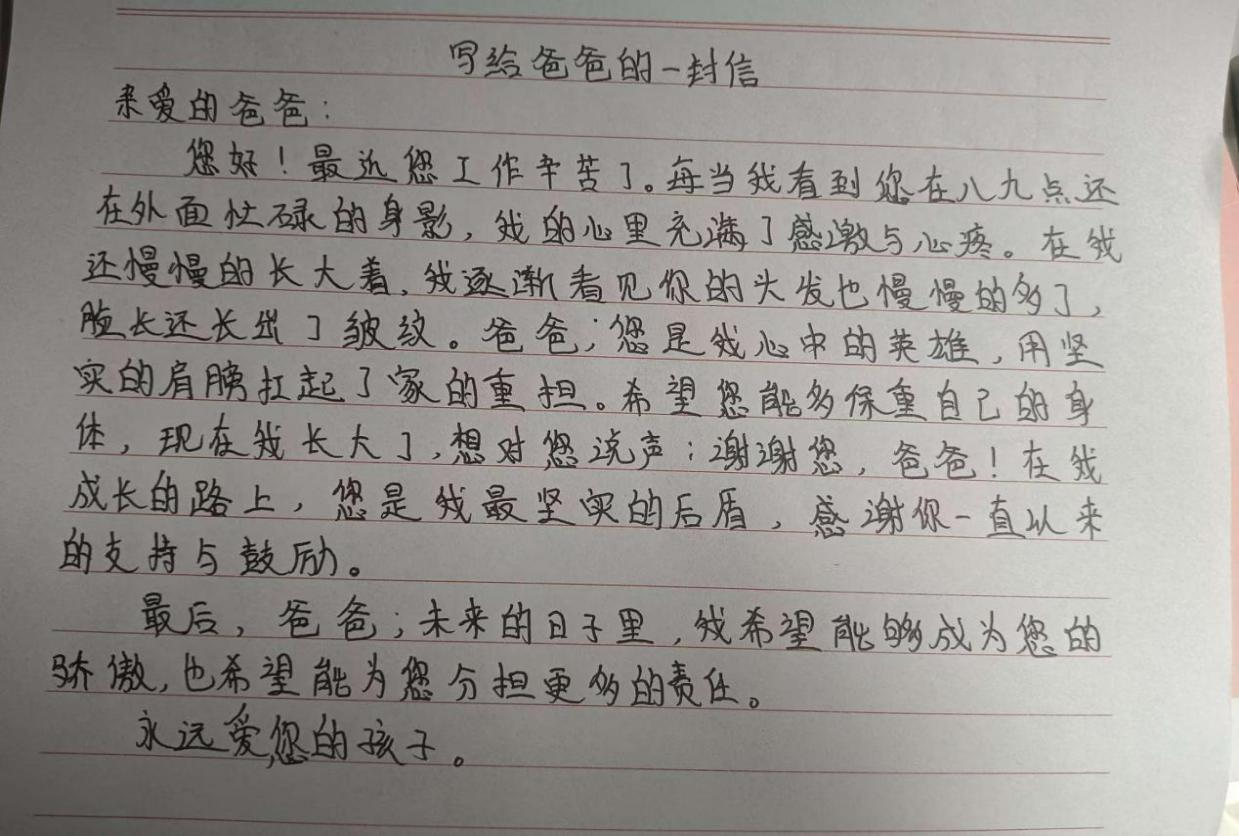 还有同学拿起笔,用真挚的情感书写着对亲人的思念和祝福。这些家书将跨越千山万水,传递到亲人的手中,成为连接彼此心灵的桥梁。