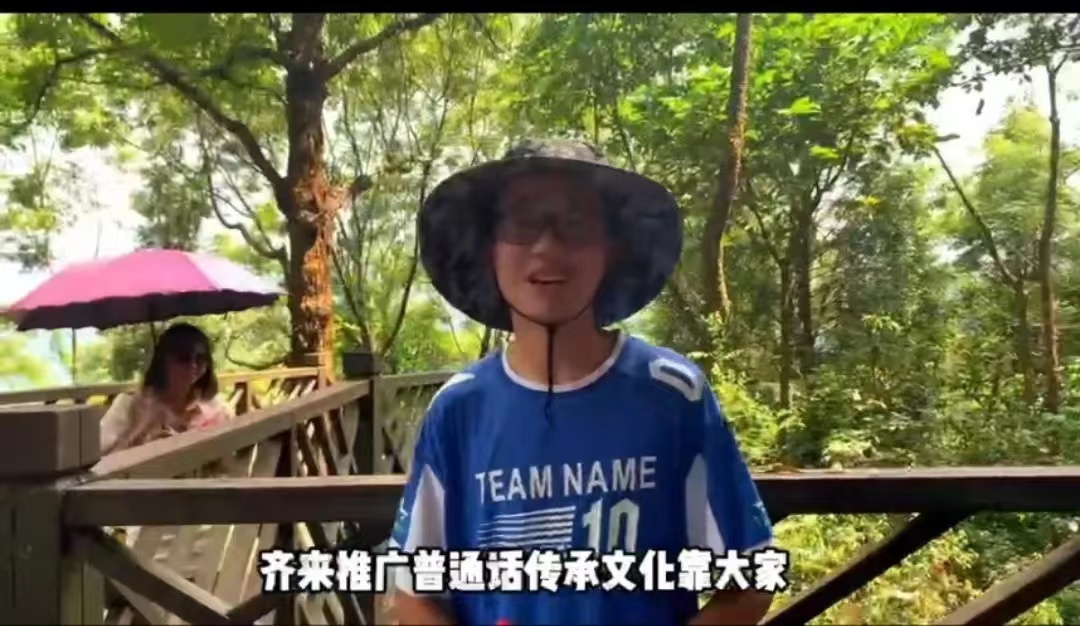在前进路途中,我们也遇到了许多热情的游客,同学们对相遇的游客进行了一系列的采访对话,在采访过程中也感受到了大家对于宣传以及通说普通话的重视以及认可。