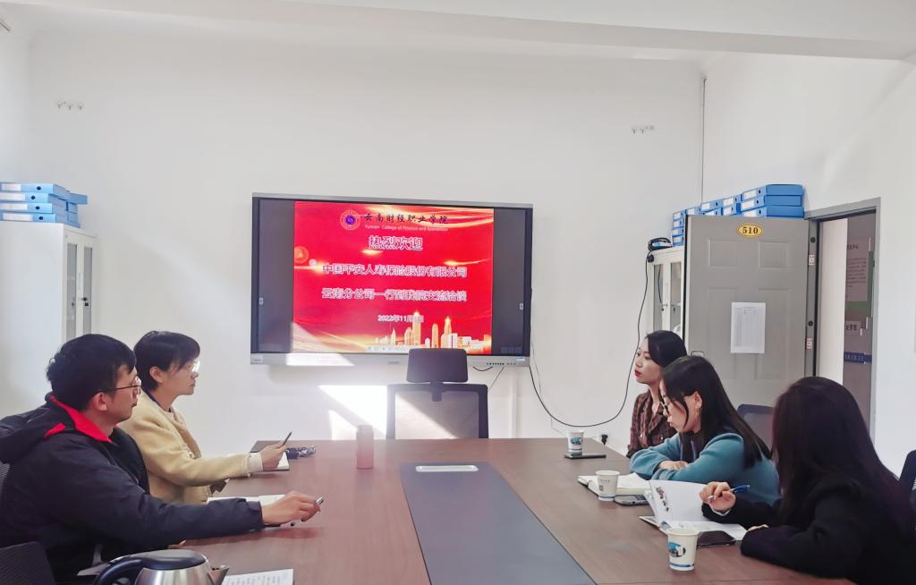 2022119日下午中国平安人寿保险股份有限公司云南分公司与财税与金融学院在敬德楼510会议室举行交流座谈会。