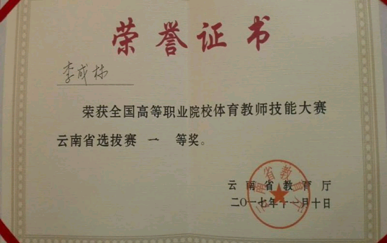 2017年11月,我院体育教学部李亚川老师和李成林老师分别代表学院参加了云南省高职院校信息化数字教学比赛和全国高等职业院校体育教师技能大赛两位老师都取得了相当不错的成绩。