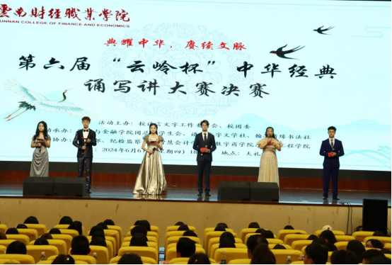 为传承发展中华优秀语言文化,深化“典耀中华”读书主题,结合学校党纪学习教育工作安排,2024年6月6日,学校在大礼堂举办第六届“云岭杯”中华经典诵写讲大赛决赛,大赛由校语言文字工作委员会、校团委主办,财税与金融学院团总支学生会、校语言文字文学社和翰墨情缘书法社承办。