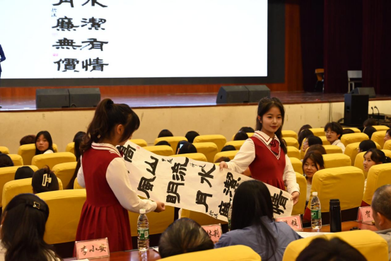 校党委副书记仲新出席大赛并致辞,仲新在致辞中指出中华优秀传统文化是中华民族独特的精神标识,承载着中华文明数千年的历史积淀,蕴含着深厚的民族气节、爱国情怀、道德品质和艺术魅力。通过书写中国汉字、诵读中华经典,讲解中国诗词,将中华优秀传统文化与大学生思想政治教育相融合,促进中华优秀文化创造性转化,创新性发展,坚定文化自信,提升民族自豪感,做明大德、勇担当的新时代好青年。