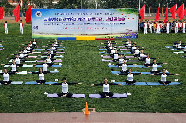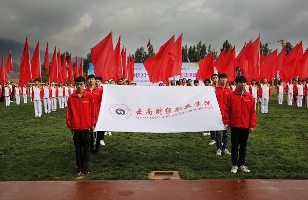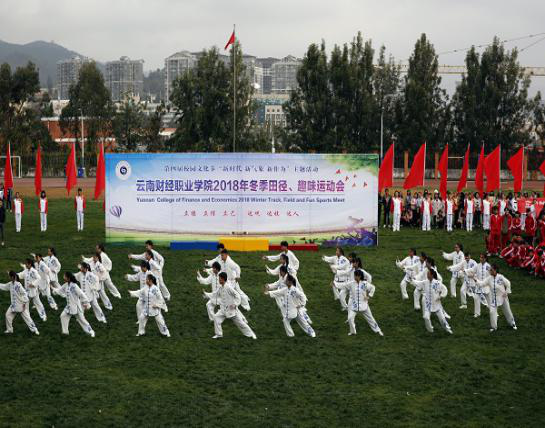 2018年12月12日,云南财经职业学院第四届冬季田径趣味运动会在学院田径场开幕,本次运动会各个系学生和所有老师都积极参加,从前期的准备工作到运动中的裁判、赛程安排以及结束的扫尾工作都离不开各个领导的重视和裁判们的辛苦付出以及同学们的积极参与,为这次的运动会增添了许多乐趣,也提体现出学院运动会意义所在。开幕式上学院领导和全校师生员工出席了开幕式。开幕式由仲新副院长主持,李思泽书记致开幕词并宣布运动会开幕。