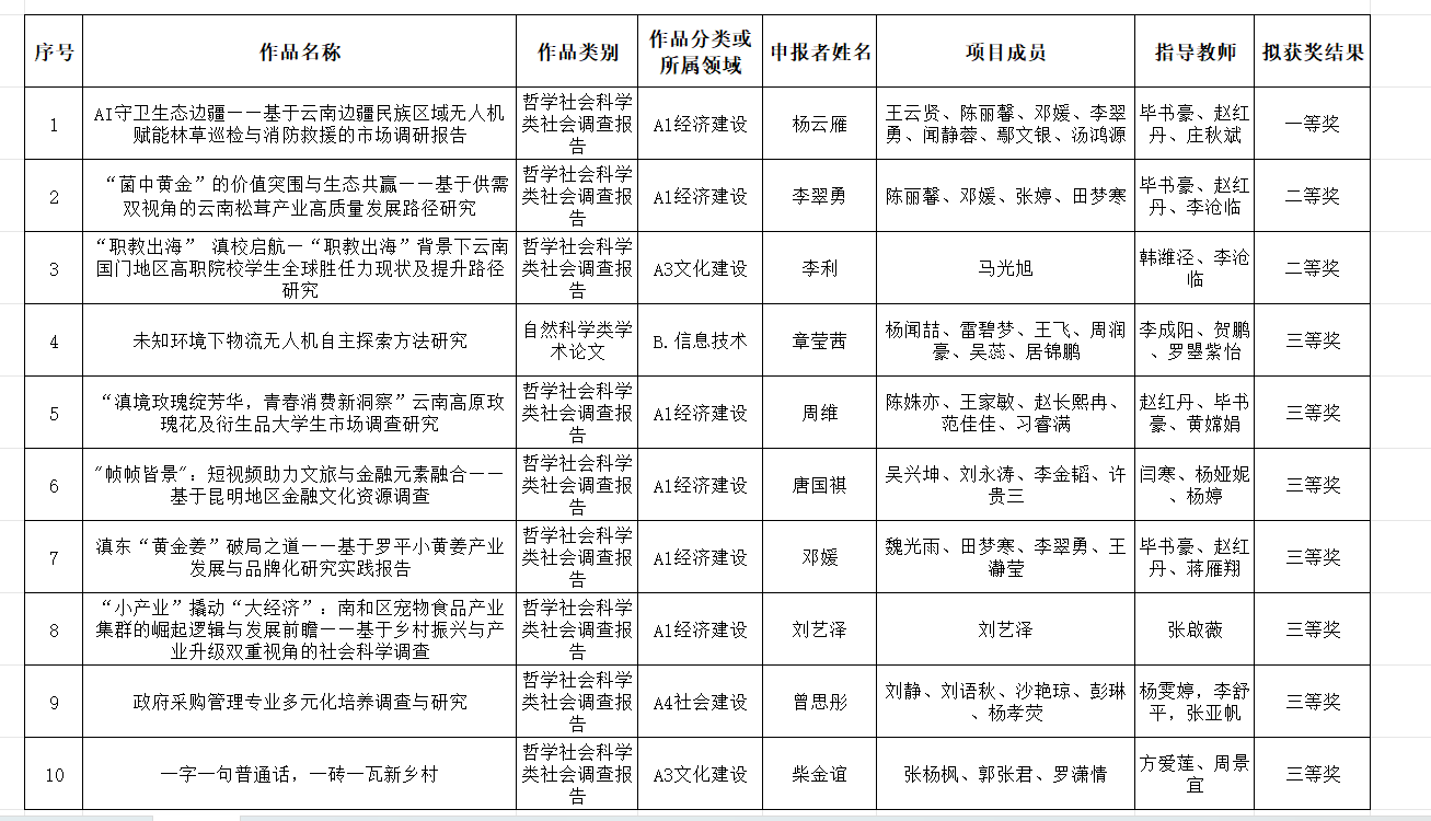 6月20日,由共青团云南省委、中共云南省委教育工委、云南省科学技术协会、云南省社会科学院、中国科学院昆明分院、云南省学生联合会举办的云南省第十三届“挑战杯”大学生课外学术科技作品竞赛省级决赛,在滇池学院(杨林校区)落下帷幕。我校报名参赛12件作品,经过激烈角逐,共斩获一等奖1项、二等奖2项、三等奖7项,实现学校在此项赛事获奖等次和获奖数量的历史性突破!