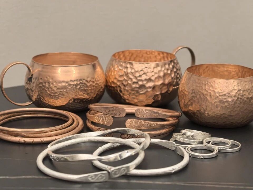 在鹤庆新华村的银器手工作坊里,同学们在匠人的悉心指导下,亲身体验了熔银、锻打、塑形、雕花、抛光等银器制作全流程。学生深有感触地说:“单是制作一只手镯,就需要重复上千次锤打,每个弧度、每道花纹都凝聚着匠人的专注与坚持”。当一件件精美的手镯、戒指及咖啡杯相继完成时,大家深刻认识到,每一件银器的诞生,都是无数精力与毅力的结晶,更是百年技艺传承的生动体现。