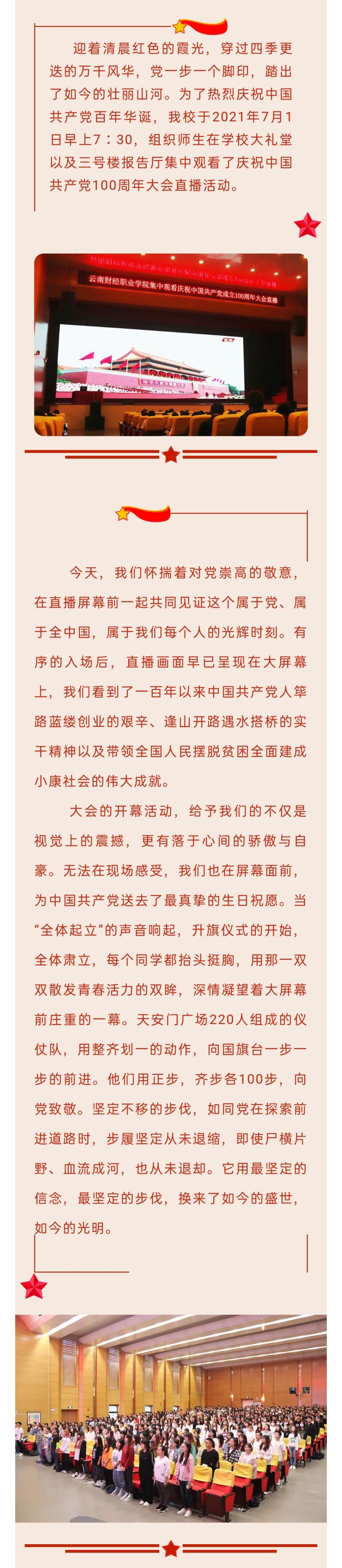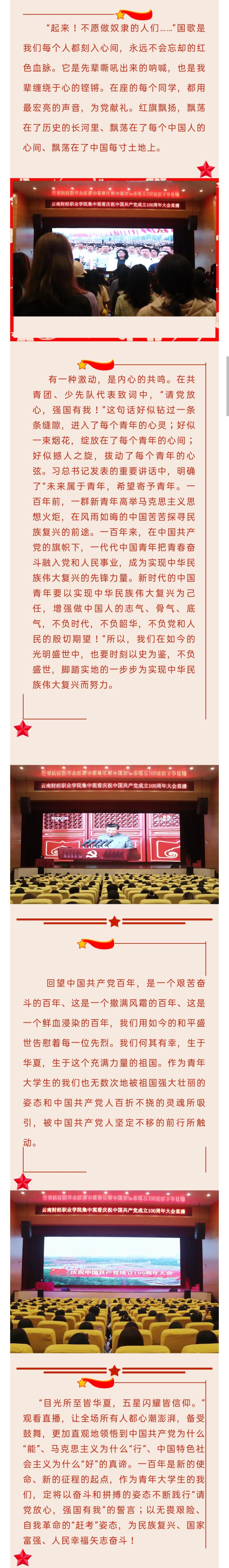 云南财经职业学院集中观看庆祝中国共产党成立100周年大会直播活动