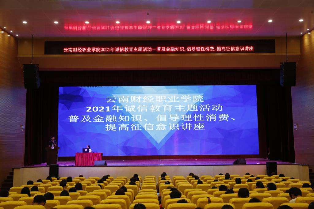 在庆祝中国共产党成立100周年之际,为加强青年学生思想道德建设和爱国主义建设,培养知史爱党、诚信自强的社会主义合格建设者和可靠接班人,深入推进资助育人,增强当代大学生的诚信意识和责任担当。学校于近期开展了“诚信 励志 感恩”主题教育活动。2021年5月18日下午,学生工作部举办了“2021年诚信教育主题活动——普及金融知识、倡导理性消费、提高征信意识知识讲座”,讲座邀请到了中国工商银行北京路支行杨舒尧经理担任主讲人,各院(部)340余名师生代表参加了此次讲座。