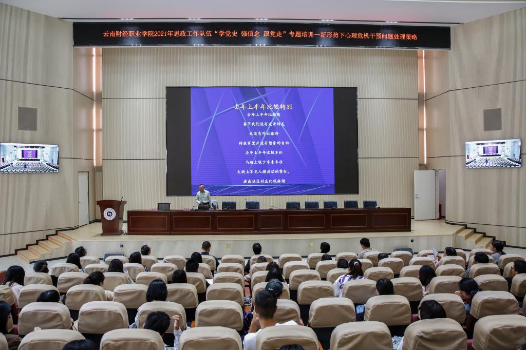 为认真学习贯彻习近平新时代中国特色社会主义思想,深入贯彻落实党的十九届五中全会精神,统筹抓好学校思想政治工作队伍培训,进一步推动思想政治工作专门力量建设,切实培养高素质、高水准的思想政治工作队伍,不断提升高校思想政治工作质量。根据《教育部等八部门关于加快构建高校思想政治工作体系的意见》精神,结合学校“我为师生办实事”实践活动要求,学校组织开展了2021年思想政治工作队伍专题培训——学生心理问题及危机识别干预专题讲座。