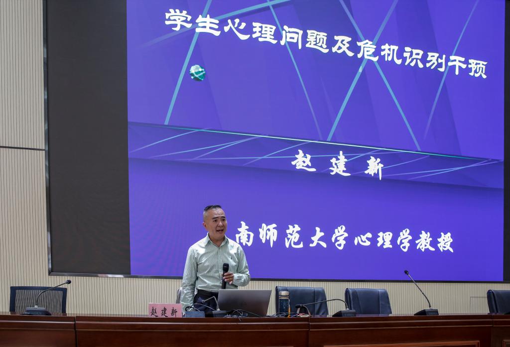 随着我国高等教育的快速发展,大学生的心理健康问题也不断显现,日益受到全社会的关注,心理健康教育也越来越被全社会和高校重视。心理健康教育不仅是提高大学生整体素质的要求,也是大学生全面发展,成为“四有”人才的重要保证和基础。作为高校思想政治教育工作者,处于教育、引导、与学生沟通的第一线,学生的心理健康教育更是工作的重中之重。527日,学校特别邀请到云南师范大学赵建新教授,为学校思政工作队伍开展题为《学生心理问题及危机识别干预》的专题培训,提高我校心理危机排查与干预的工作能力,进一步提升学生管理队伍对大学生心理问题的应对能力,努力创建和谐校园。