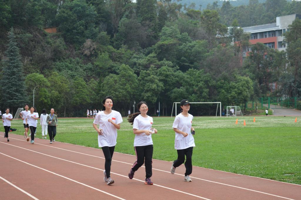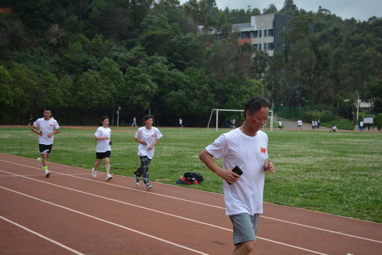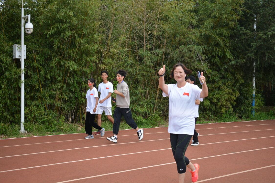 长跑活动接近尾声,部分老师、同学们已疲惫不堪,但仍在坚持。经过一个小时多的时间,所有参与者均完成了7.01公里长跑,虽然汗水湿透了衣裳,但大家脸上都洋溢着愉悦的笑容。仲新副书记和沈豫琼副校长无休息、不停步,全程跑完了7.01公里,给全场的教师和同学做出了表率。