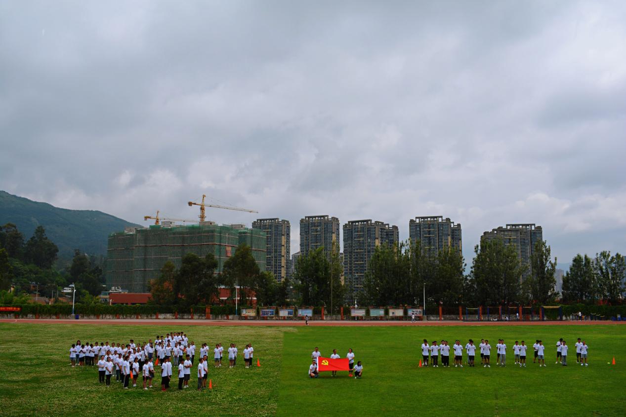 大家集结在操场摆出七一造型为党庆生,共同齐唱歌曲《少年》、《没有共产党就没有新中国》表达对党百年华诞的祝福,表达对党带领着人民走向胜利、走向幸福的感激。