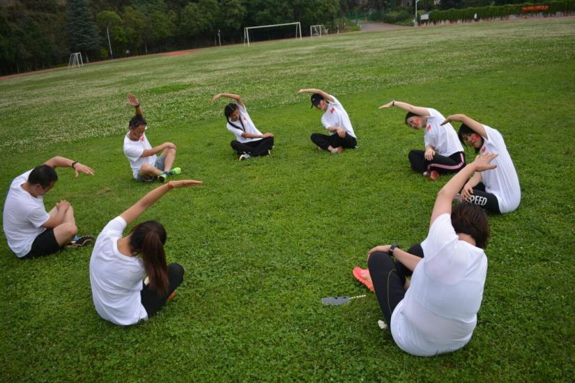 开跑前,经济学院党支部书记周跃同志带领全体参与者做热身运动,避免运动过程中出现运动损伤,所有老师及同学认真参与热身活动、蓄势待发。