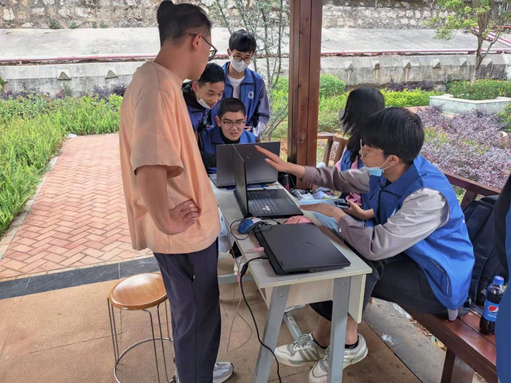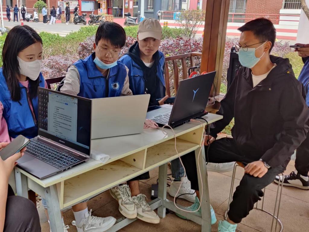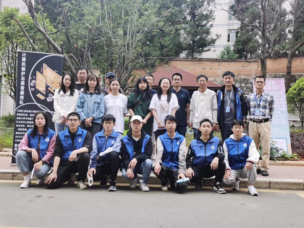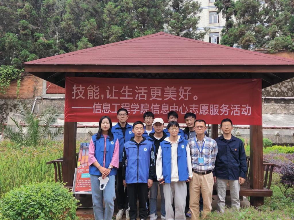 2022年5月12日下午14:00时开始,学校计算机维护志愿者朱航、王朝新、王庭周、刘欢、尹文滇、李永雪、范德志、杨学健在信息工程学院和信息中心多位指导老师的共同带领下,在学校内设置服务站点,义务为同学们维修电子产品,普及计算机应用知识。