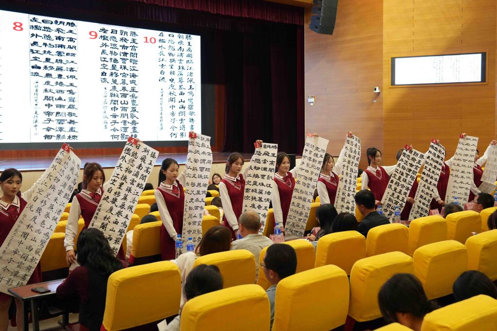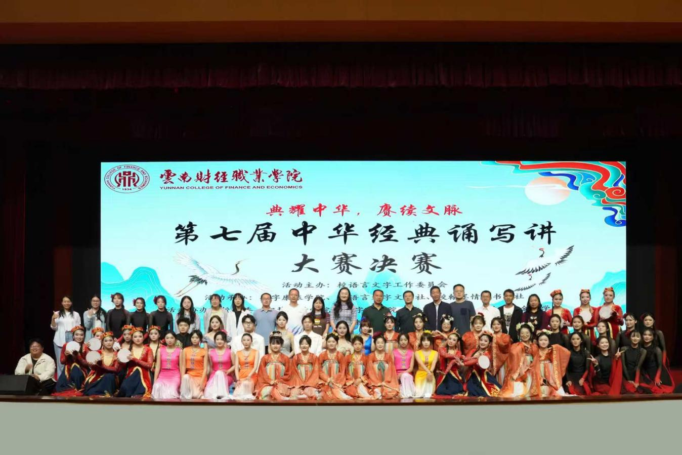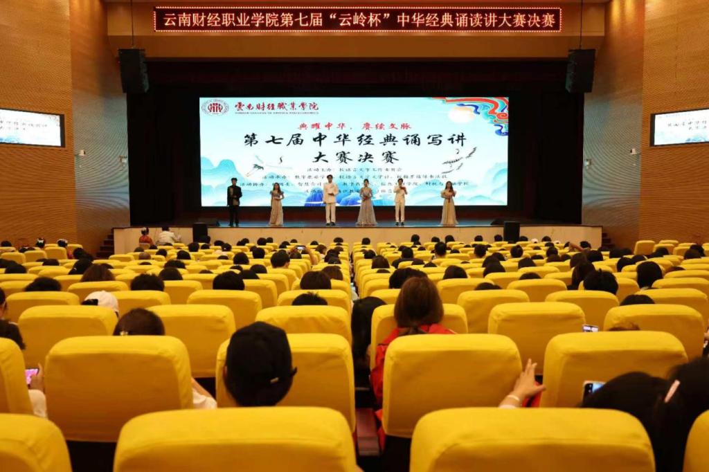 2025年5月15日,由校语言文字工作委员会和数字康旅学院联合举办的云南财经职业学院第七届“云岭杯”中华经典诵写讲大赛决赛举行。经过前期对300余组作品的初赛和复赛,42组作品进入决赛。学校党委副书记仲新,校团委、各二级学院党支部书记到现场指导,近500名学生现场观赛。