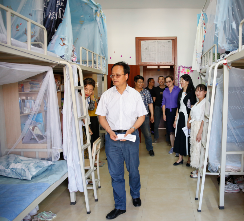 5月16日下午,学校党政领导、学生处及各教学系老师、学生组织针对申报“五星寝室”评选宿舍进行现场点评和图片采集。“五星宿舍”评选标准主要考察宿舍卫生情况和宿舍文化内涵,同时反映当代大学生的精神风貌。
