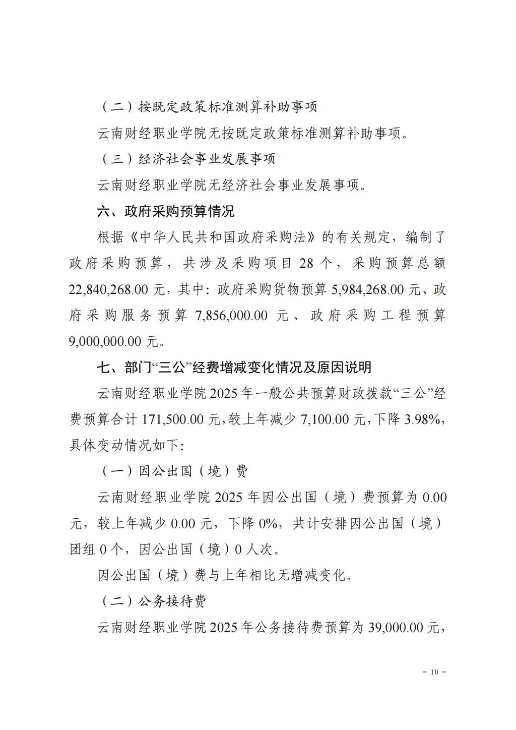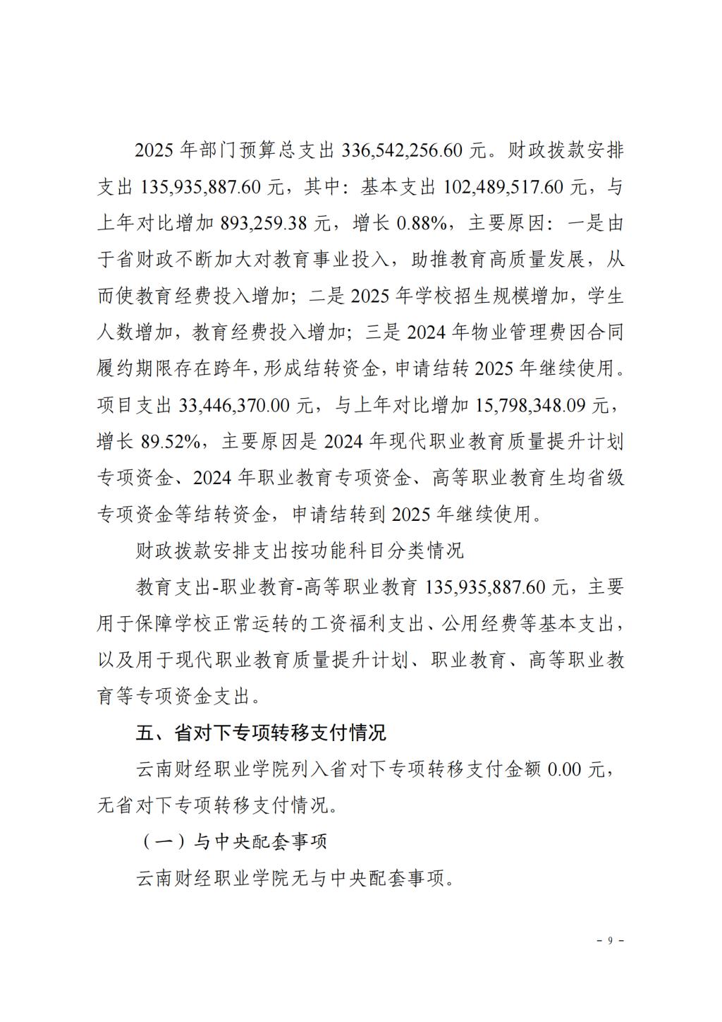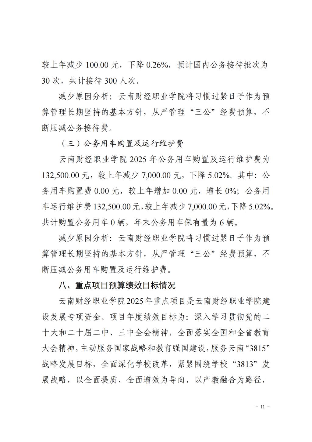 云南财经职业学院2025年预算公开