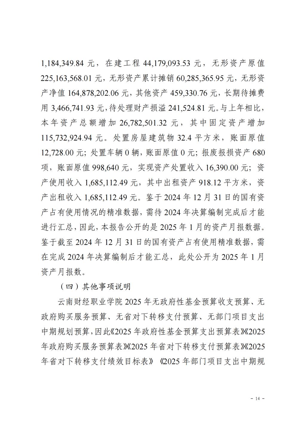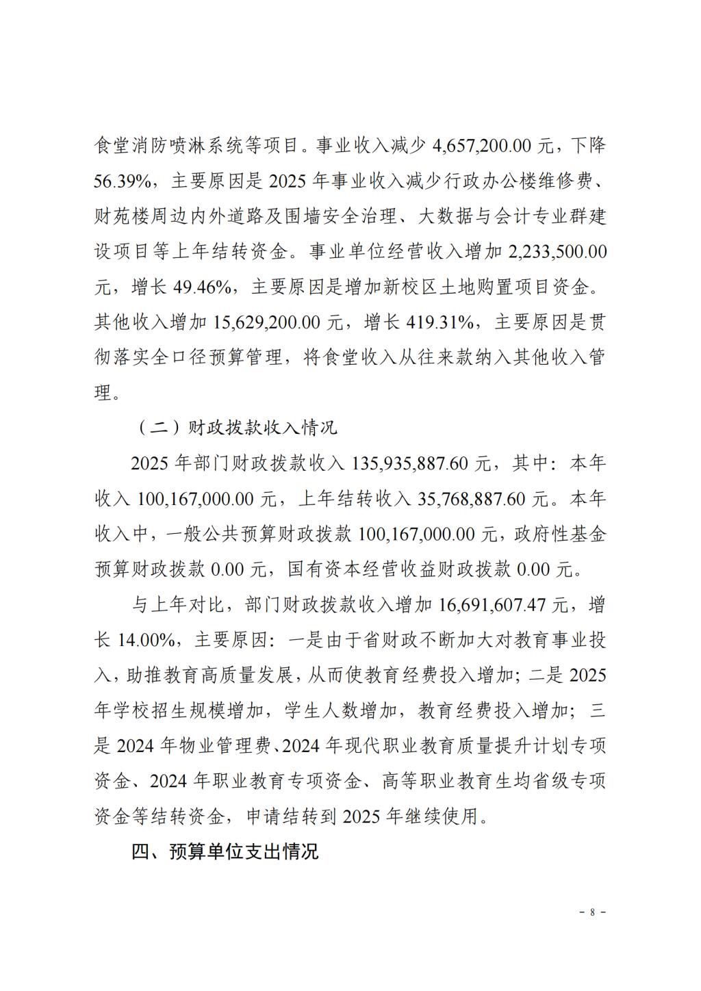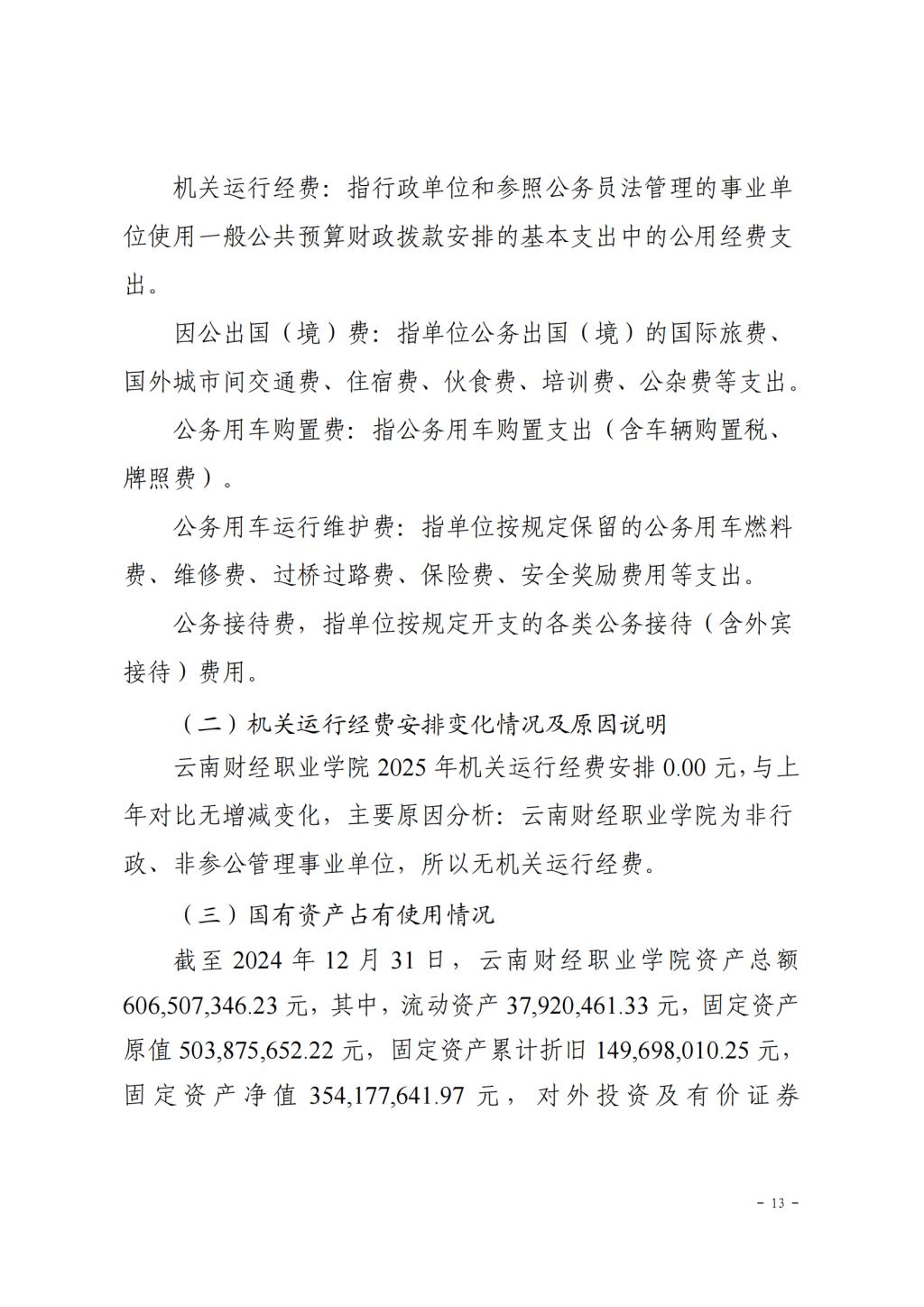 云南财经职业学院2025年预算公开