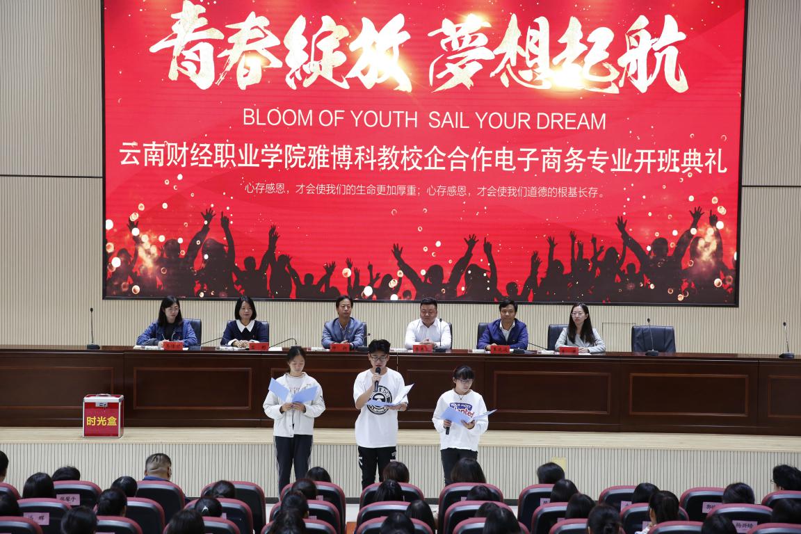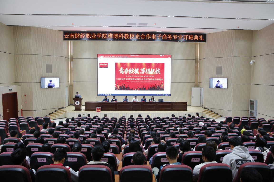 金风送爽,秋色宜人,枫林尽染,丹桂飘香。在秋色迷人的金色九月,我们相聚财职院。2019年9月26日中午,云南财经职业学院与武汉雅博信息技术有限公司校企合作共建电子商务专业2019级开班典礼在学校报告厅隆重举行。