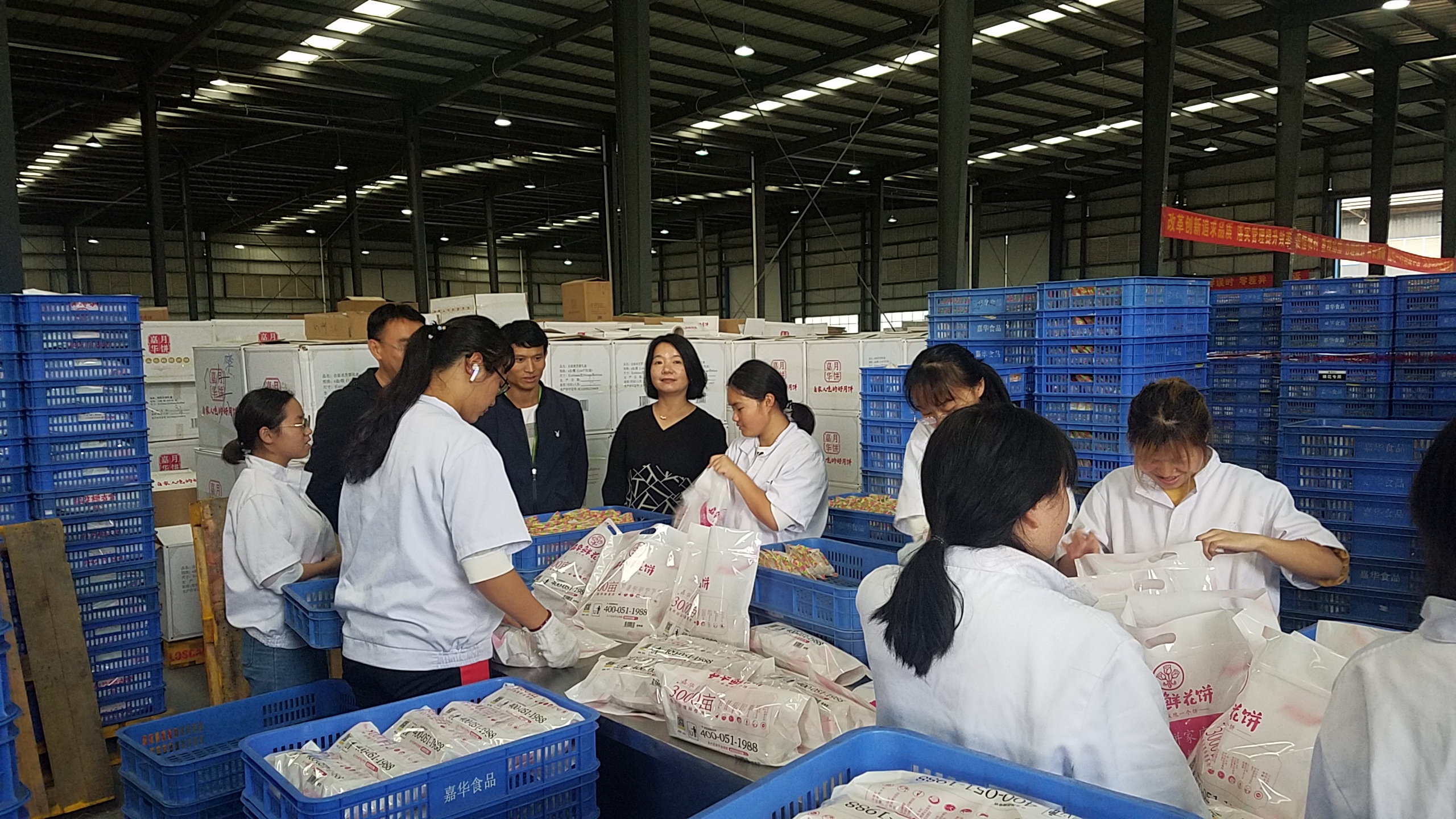 8月14日嘉华公司把学生从学校接到企业开始跟岗实习,实习岗位包括电商客服、组装、分拣、补货、订单、销售、打包、生产等10多个岗位。9月5日下午,工商管理系和校企合作处王兆远、董俊、石彬三位老师到嘉华七甸基地看望实习学生。在电商部和物流部,各位老师了解同学们的吃、住和工作情况,同学们精神面貌比较好,在各自的岗位上干得热火朝天。在电商岗位的同学相对轻松,而部分在物流岗位的同学业务量大时就比较辛苦,不过同学们都表示能够坚持工作。部门同学看到老师都很激动,就像看到久别重逢的亲人一样亲切!