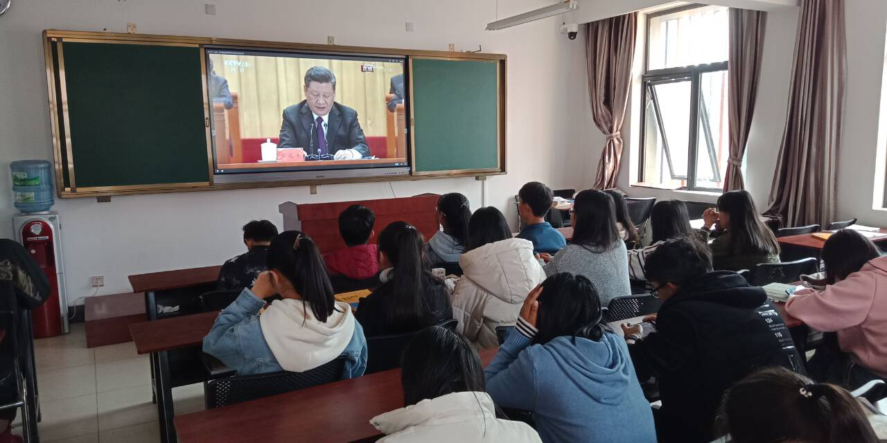 工商系200多名师生在教室收看了现场直播,聆听习近平总书记讲话时掌声不断。同学们表示,要认真学习习近平总书记的讲话精神,刻苦学习文化知识技能,不忘初心、牢记使命,为实现“两个一百年”奋斗目标、建成富强民主文明和谐美丽的社会主义现代化强国、实现中华民族伟大复兴的中国梦贡献自身力量。