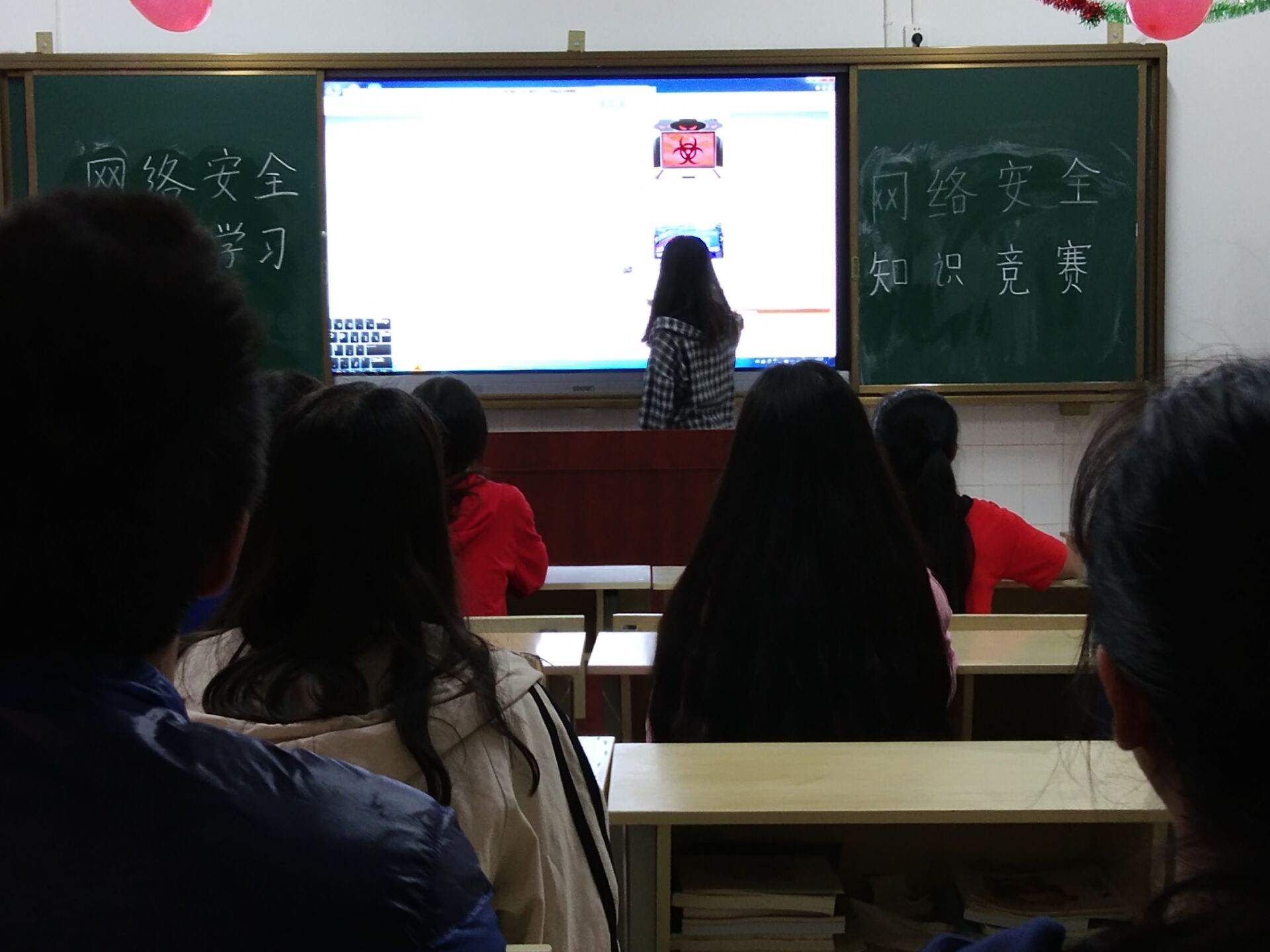 此类事件的发生,说明我们同学还对网络安全不抱重视态度,所以宣传网络安全知识,势在必行。同时由于此类事件的发生,所以同学们也积极参与主题班会活动,并认真听讲回答问题,现场气氛活跃。