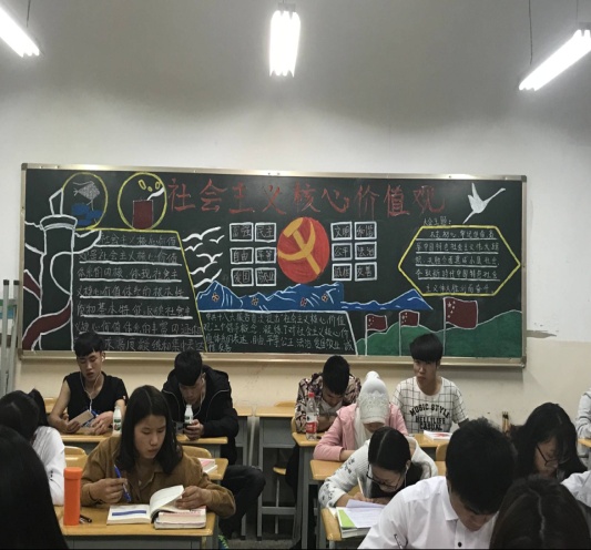 在党支部的组织下,全系6个教学班级团支部集思广益,充分发挥大学生的主动性、创造性,分工合作,制作的黑板报主题突出,内容丰富,图文并茂,版面生动活泼,融时代性、知识性、教育性于一体。班级的黑板报各具特色,精彩纷呈,为校园增添了一道亮丽的文化风景线。